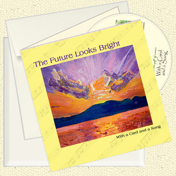 A CD of an original song inside a beautifully crafted 6x6 inch note card with matching envelope and paperboard mailer. The song lyrics are printed on the back of each card using recycled paper and green earth technology.